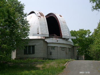 Внезатменный коронограф УАФО был построен в 1981 году. Диаметр главного объектива - 530мм. фокусное расстояние - 8000мм. Эквивалентное фокусное расстояние - 12500мм. Коронограф снабжен стационарным спектрографом с дисперсией 1 А/мм во втором порядке. Регистрация спектров производится как на фотоэмульсию, так и на цифровую камеру. |